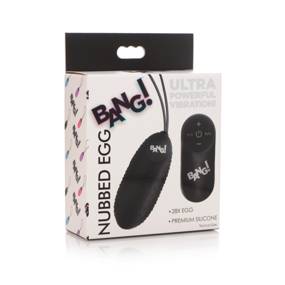 This powerful silicone egg vibrator has textured nubs that add extra stimulation as it vibrates inside. The silky smooth, premium silicone is phthalate-free and body safe to use. Use the battery operated remote control to switch between 4 speeds and 7 patterns of powerful vibration while the egg rumbles inside! Recharge the egg using the USB cable provided by pressing the pin into the dimple on the side. Made with waterproofing materials, this egg is splashproof and perfect for wet adventures! First, turn the vibrator on so it can pair with the remote control before inserting. Use plenty of your favorite, water based lube on yourself and the egg, then hold onto the pull string as you push it inside. Start playing with the settings so you can feel the powerful rumble of vibration within. Use it on yourself or hand the remote to a partner for couple’s fun! After use, simply wash the toy with warm water and soap, then spray with a toy cleaner, wipe down and let it fully dry. Store in a cool, dark place. Measurements: Overall length: 2.75 inches, Overall width: 1.2 inches, Cord length: 3.6 inches Materials: Silicone, ABS plastic Color: Black Note: Remote distance up to 32ft, requires 1xCR2032 battery (included). Key Features: Premium Silicone: This vibrating egg is made from phthalate-free, premium silicone and is silky smooth and safe to use! Textured Egg: This slim, oval shaped egg has small, textured nubs along the body for extra stimulation. Powerful Vibrations: Enjoy 4 speeds and 7 patterns of powerful vibration that you can mix and match using the remote control included. Waterproof and Rechargeable: Made with IPX5 waterproofing, this toy is splashproof and safe to use with water based lubricants and other water based liquids. Recharge using the USB charging cable included.