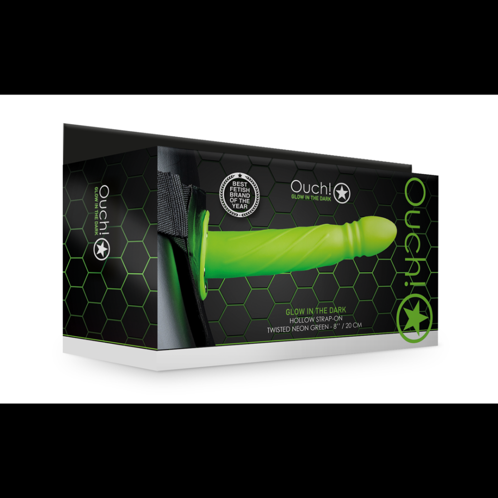 Glow in the Dark Twisted Hollow Strap-On – 8 / 20 cm – Neon Groen