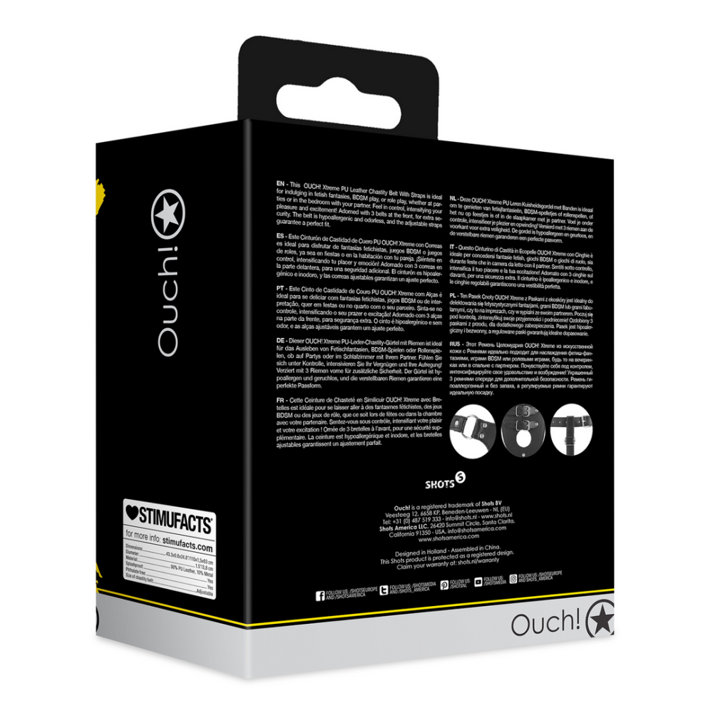 Deze OUCH! Xtreme PU Leren Kuisheidsgordel met Banden is ideaal om te genieten van fetisjfantasieën, BDSM-spelletjes of rollenspellen, of het nu op feestjes is of in de slaapkamer met je partner. Voel je onder controle, intensifieer je plezier en opwinding! Versierd met 3 riemen aan de voorkant voor extra veiligheid. De gordel is hypoallergeen en geurloos, en de verstelbare riemen garanderen een perfecte pasvorm.